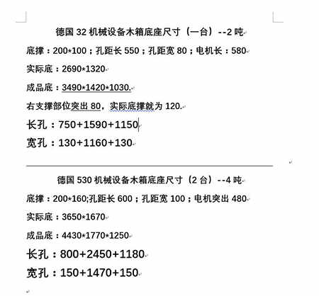 很多人以为,一个木箱包装,一个设备木箱,仅仅量下长宽高就可以,随便做出来一个木箱放上一个产品就可以了!其实不然,专业的出口木箱包装工程师需要对产品的精细把握,细到设备的承重点、受力点,每个螺孔的固定点等。看,我们木箱厂的专业包装工程师给客户定制折木箱包装底座参数,有多精细了吧!